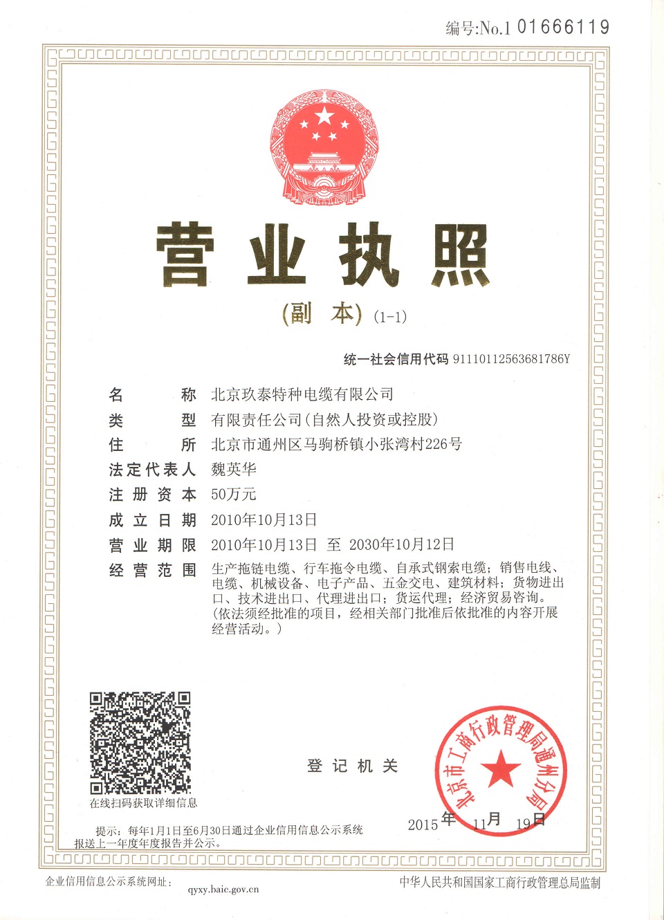 玖泰特種電纜創建于2010年,北京質量檢驗認證協會電線電纜質量分會會員單位。