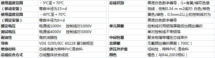 技術參數2DE拖鏈電纜-卷筒電纜-高柔性坦克鏈電纜廠家